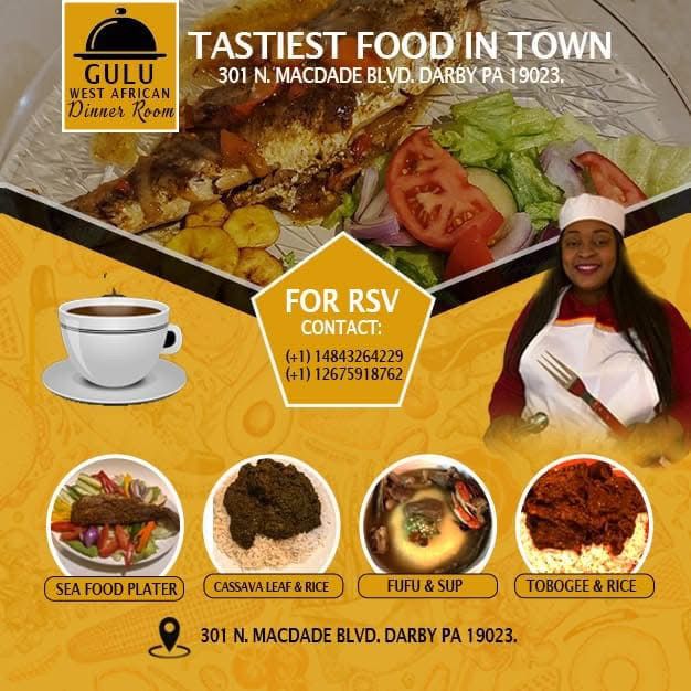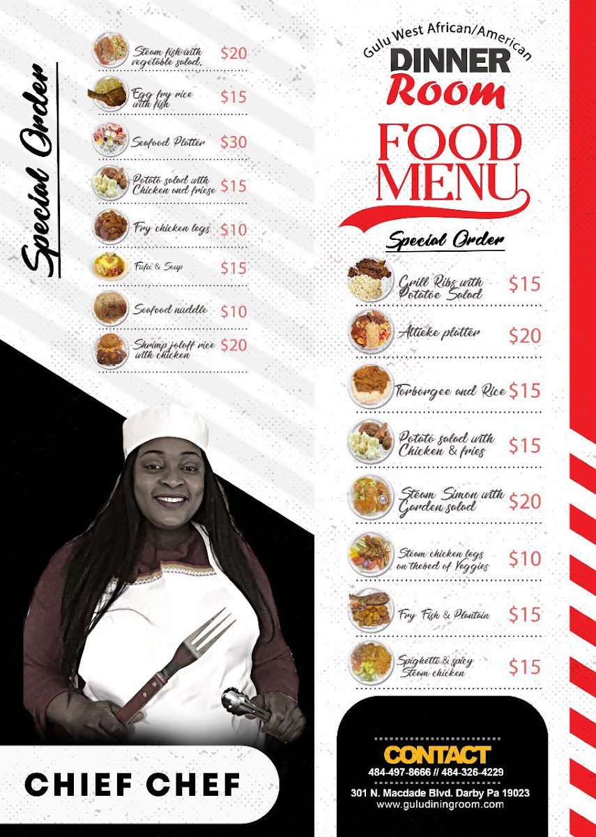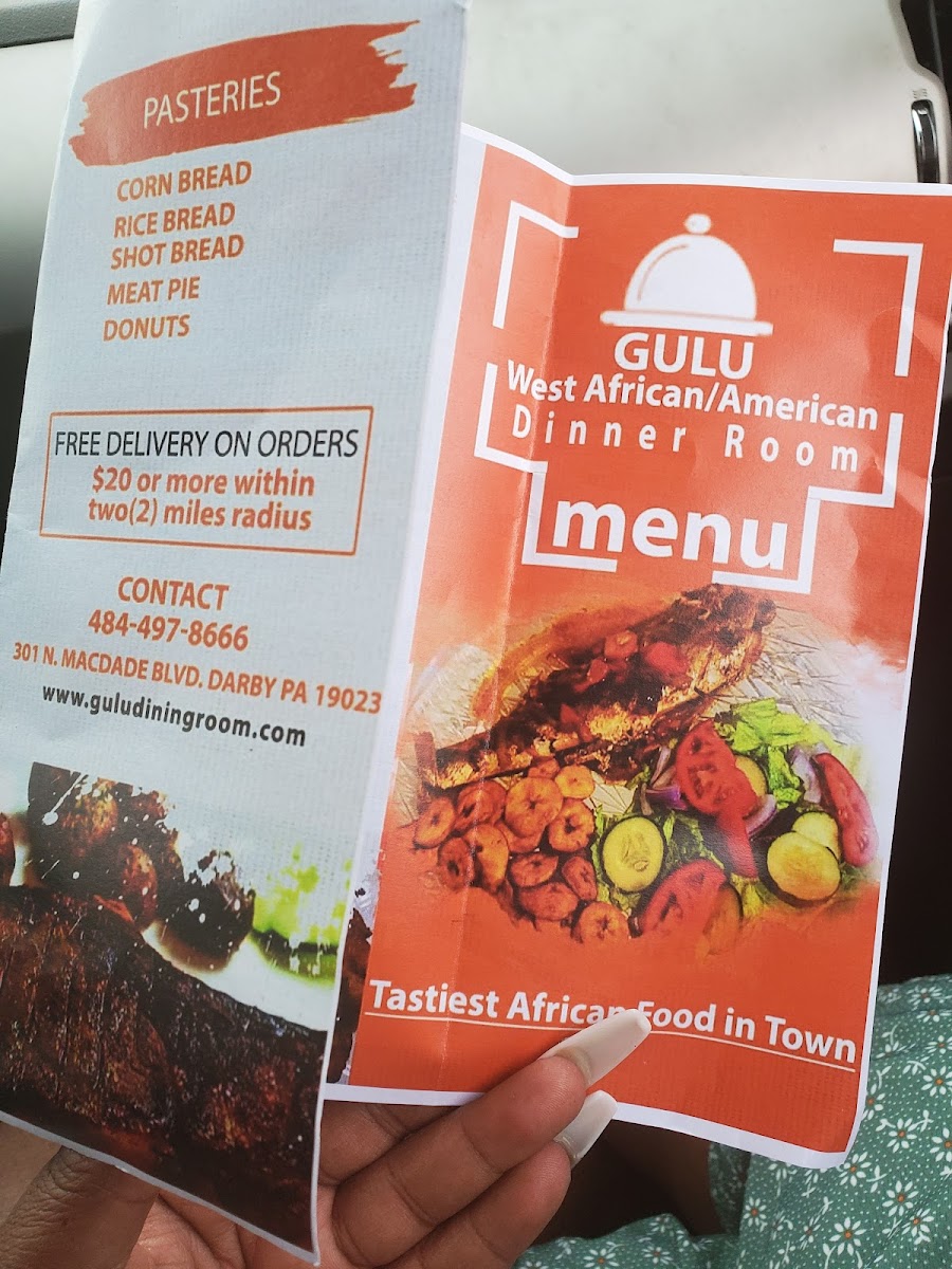 Step into a world of bold flavors and authentic West African cuisine at Gulu West African Dining Room Menu. Located at 301 N MacDade Blvd, Darby, PA, this cozy dining spot offers a vibrant menu packed with the rich tastes and textures of West Africa. Whether you're in the mood for hearty stews, flavorful grilled meats, or aromatic rice dishes, there’s something to satisfy every craving. Each dish is crafted with traditional ingredients and spices, bringing the true essence of West African cooking to your table. Don’t forget to pair your meal with one of their refreshing drinks or desserts for the perfect end to your dining experience. A visit here promises a delightful journey through some of the most beloved dishes from the African continent.